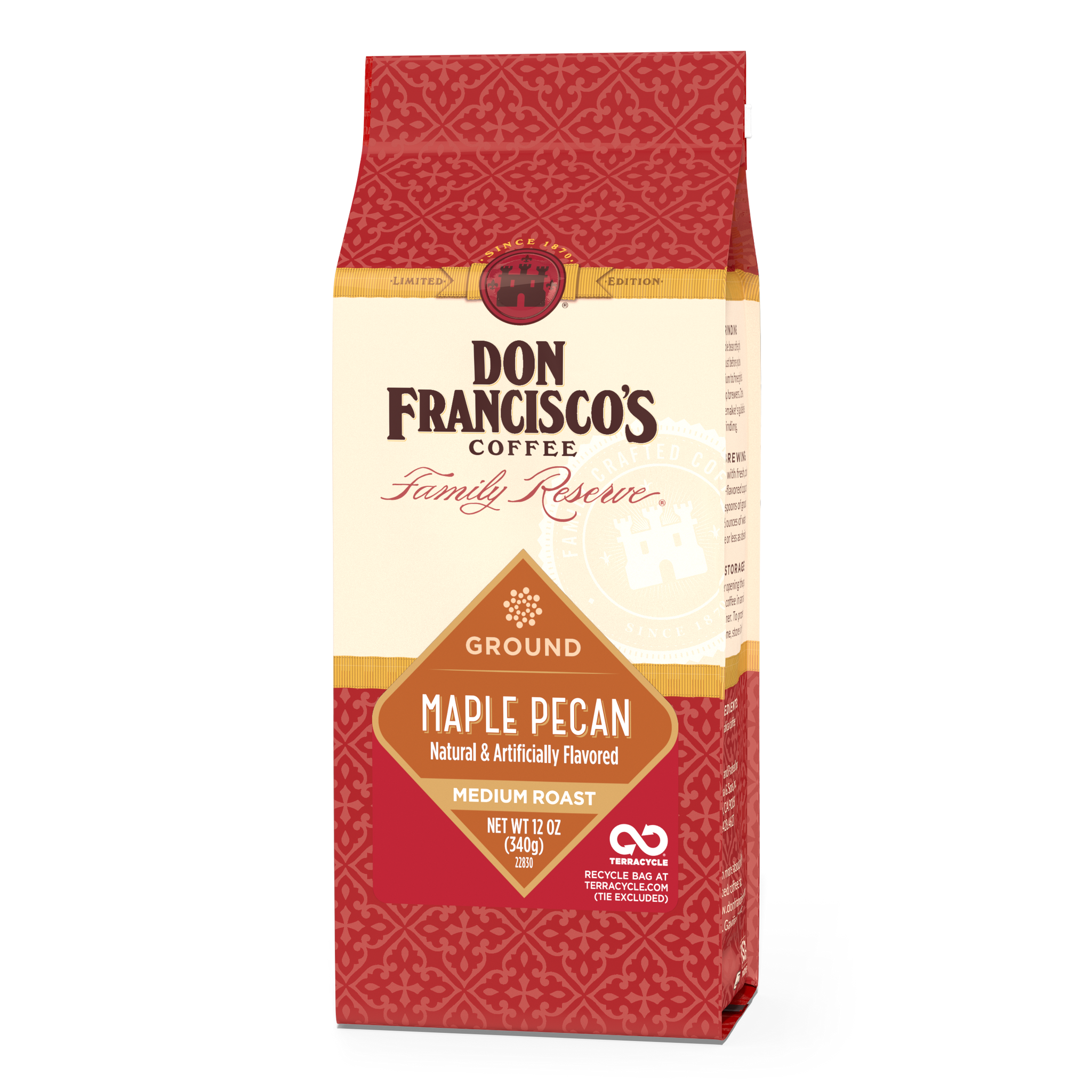For over 150 years, Don Francisco’s Coffee has been rooted in family tradition and a passion for crafting exceptional coffee. As part of our Family Reserve, Maple Pecan is roasted and packed in the USA with care and expertise, ensuring the highest quality and freshest taste in every brew.