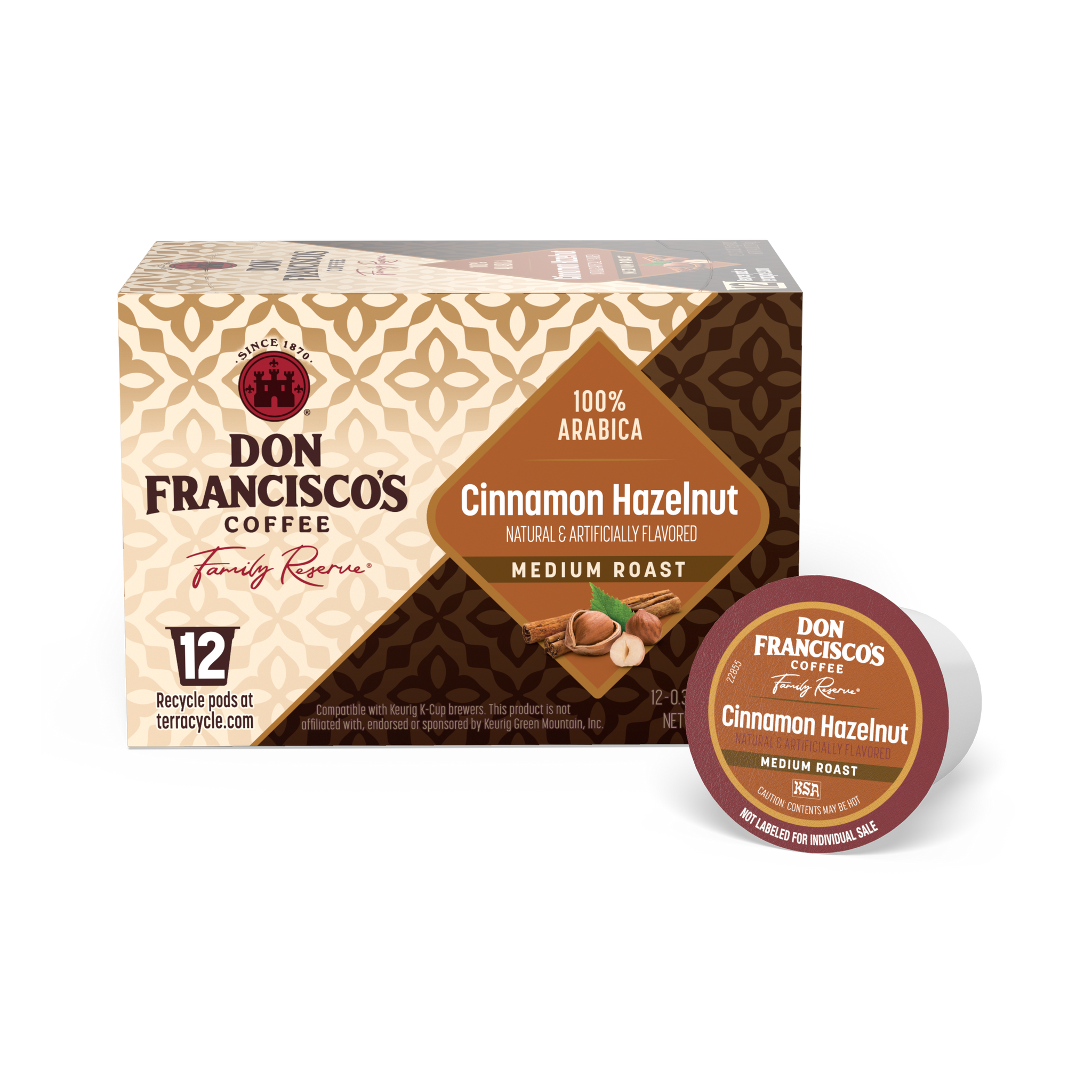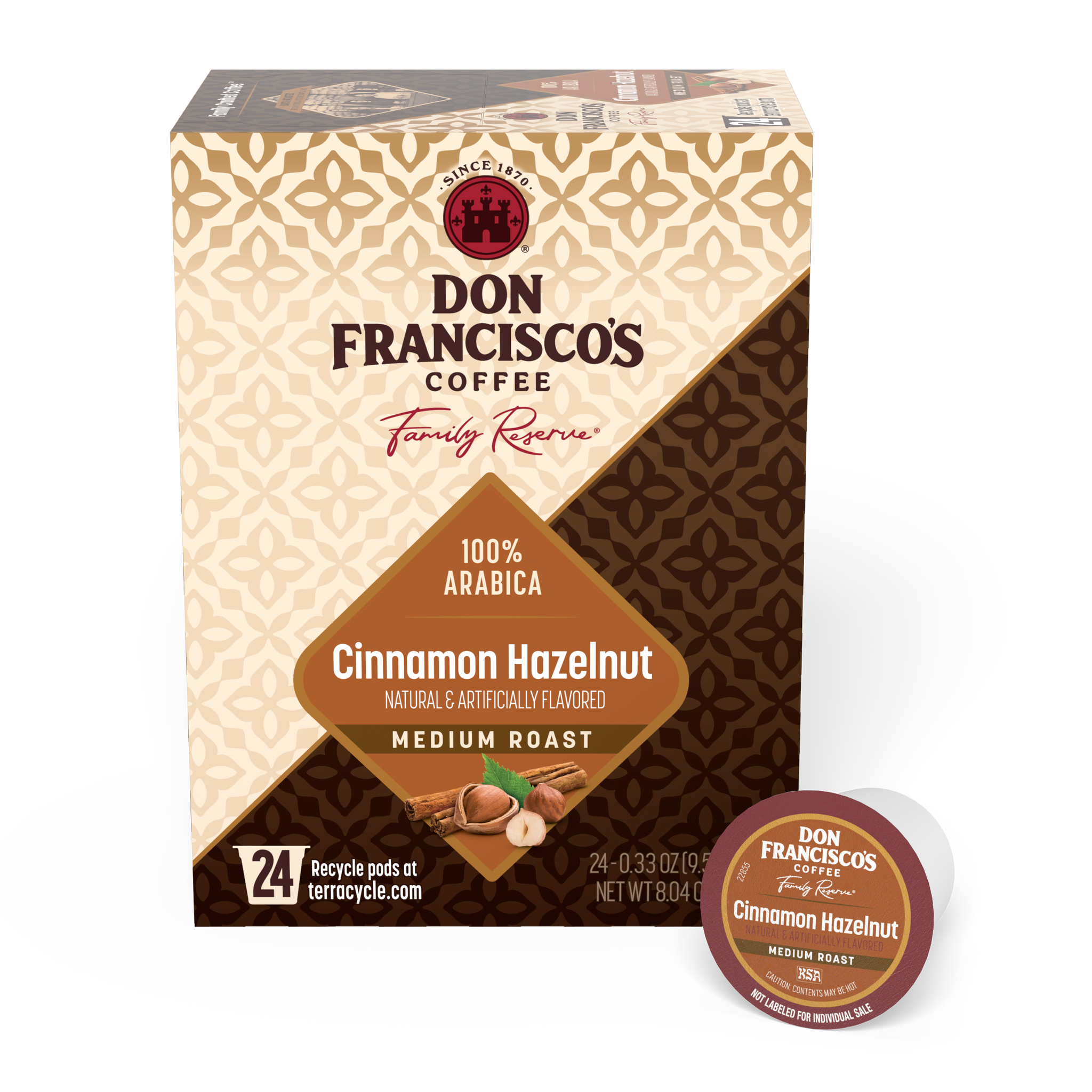 A delicious choice for breakfast, that mid-morning jolt or an afternoon pick-me-up, Don Francisco’s® Coffee in Cinnamon Hazelnut flavor has all the distinctive notes of spice and toasted hazelnuts in every sip. From the wafting aroma that awakens your nose as it brews to the spicy warmth it leaves on your palate – we like to think of Cinnamon Hazelnut as an oversized sweater that envelops you and keeps you ultra-cozy even on the coldest days.
